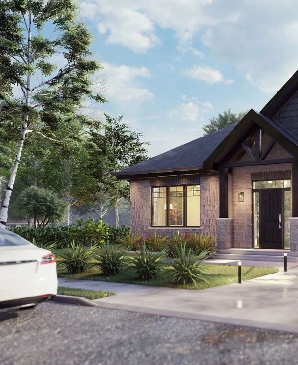 Alors que les plans et descriptions transmettent des spécifications, les rendus 3D extérieurs richement texturés forgent une connexion émotionnelle qui influence les décisions d'achat en votre faveur. Nos services de visualisation photoréaliste augmentent la valeur perçue et la commerciabilité de votre propriété en permettant aux acheteurs potentiels de s'imaginer arriver à l'entrée magnifique de leur maison de rêve.